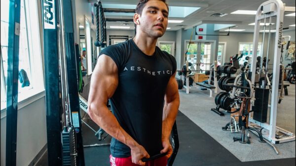 The perfect cotton and elastane blend shirt for in and outside of the gym. Fabric that provides the best feel, fit, comfort, durability, and breathable quality. The AESTHETICS script 3D silicone print logo makes for a perfect shirt to wear inside and outside of the gym. The perfect shirt for performance and lifestyle wear.